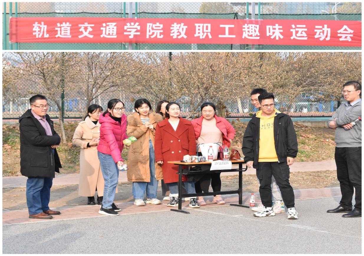 活动中,全体老师以系为单位分四个大组,共设单项、小团体、大团体三个比赛项目。单项项目有丢沙包、半分钟踢毽子、小型保龄球;小团体项目有持球跑;大团体项目有拔河比赛、运球接力。每一个比赛项目既是智慧和体力的角逐,更是团结协作的完美比拼。