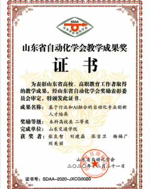 为表彰山东省高校、高职教育教育工作者取得的优异成果,山东省自动化学会于2020年2月11日颁发了山东省自动化学会教学成果奖,太阳集团网tyc9728自动化专业“基于行业和AI融合的自动化专业创新人才培养”喜获本科高校类二等奖。