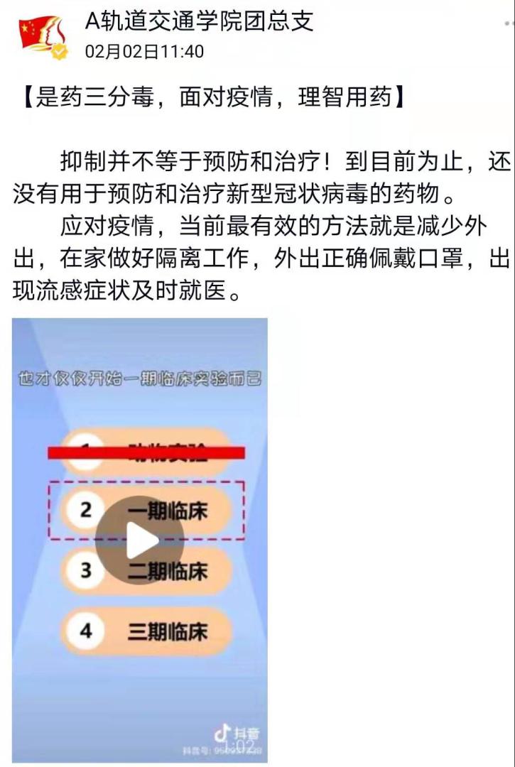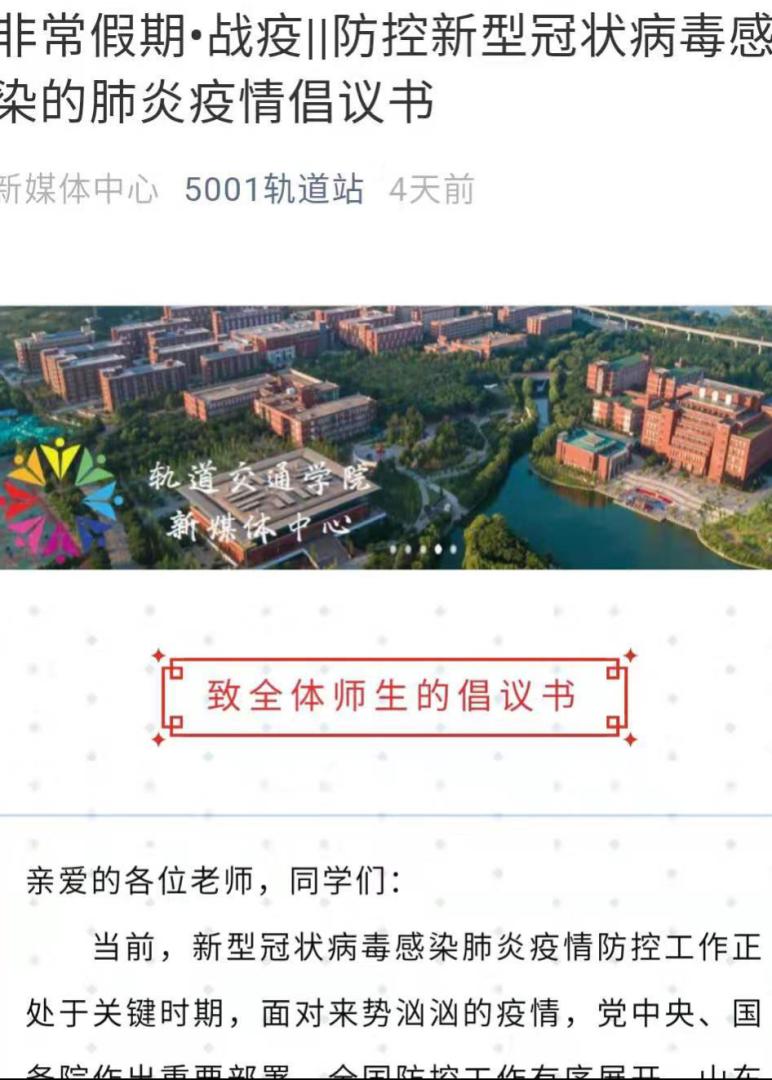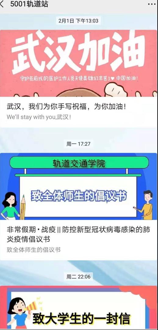 通过学院易班平台、学院官微5001轨道站、团属媒体阵地太阳集团网tyc9728团总支官方QQ订阅号以及辅导员个人账号等网络平台,累计推送疫情防控相关推文13篇。