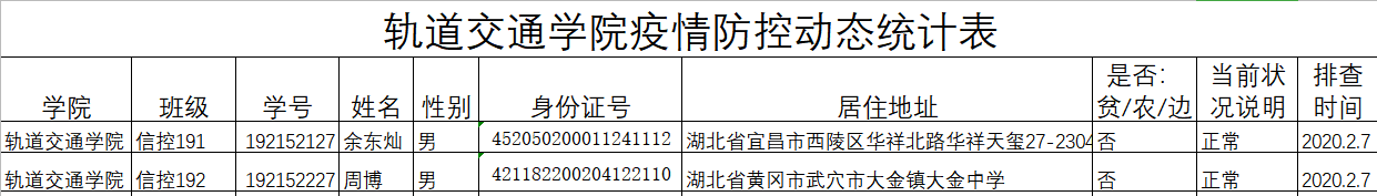 二、学院学生疫情摸排情况统计