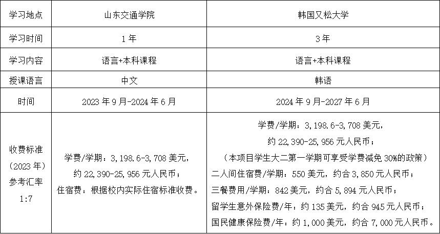 该项目学制四年,采用“1+3”模式,成绩合格可获得韩国又松大学本科学历学位证书,经中国教育部留学服务中心国外学历学位认证后,与国内同等学历学位具有同等效力