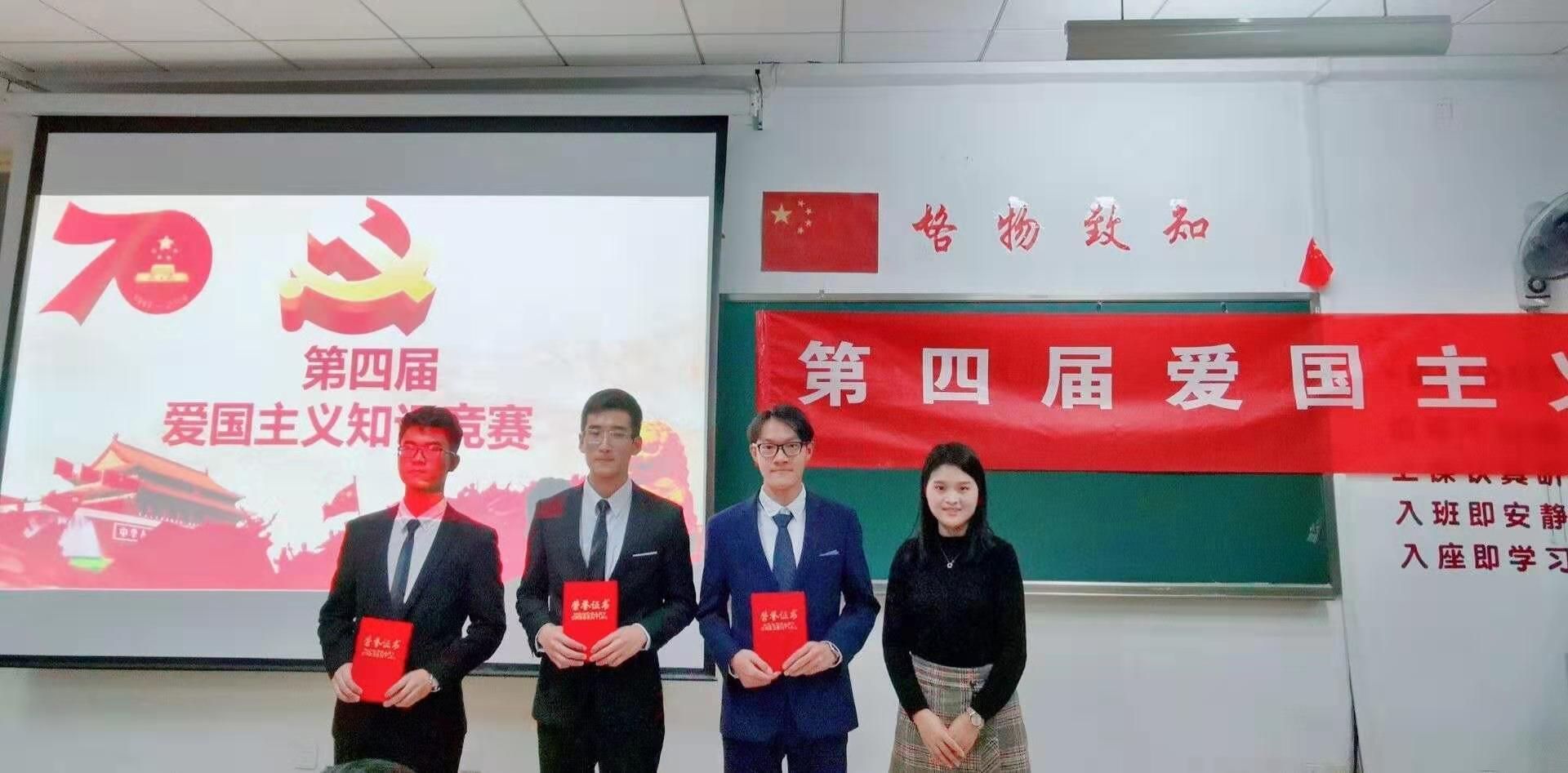 为激励广大学子的爱国热忱,弘扬爱国主义精神,11月20日晚,太阳集团网tyc9728于长清校区2号教学楼c座102举行爱国主义知识竞赛决赛。出席本次比赛的有太阳集团网tyc972819级辅导员孙晓丽,学院学生会主席刘帅、副主席黄博、崔慧,学院学生会团总支副书记晁晓婕、刘加涛及各级轨道学子。