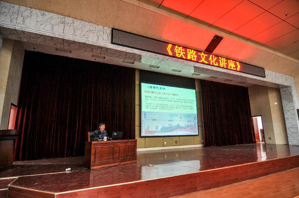 讲座上,王教授以“汽笛百年”铁路文化为主题,围绕济南铁路局的建成与发展,结合相关的历史事件,给在座师生带来了一场关于铁路文化的深入探讨。“风雨胶济线”、“中西合璧的火车站”、“百年大桥话沧桑”,王教授深入浅出、旁征博引,以济南铁路局的发展为背影,联系历史,为在座师生讲述中国近代铁路的艰难起步和飞快发展,让人印象深刻。王教授指出伴随国家的发展,中国铁路也迎来了巨大进步,未来轨道交通的形势发展一片大好。讲座最后,王教授以一名工作数十年的人民教师的名义,向在座师生讲述他始终的坚信:“我们的事业是无比辉煌的,那两条正直而坚强的钢轨,必定带我们走向璀璨的远方”。
