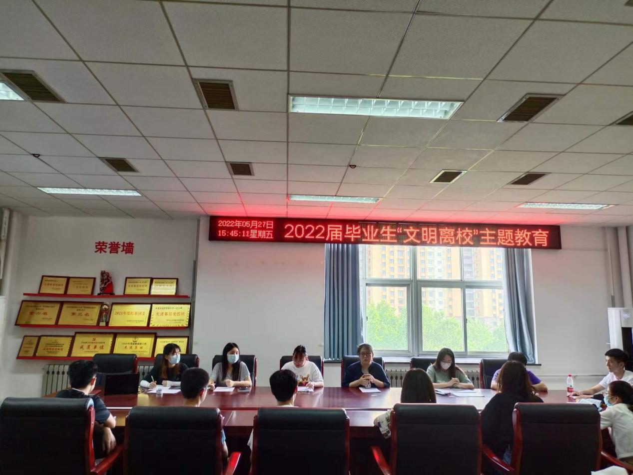 “一次主题教育忆往昔”,学院开展“回忆、感恩、责任、奉献”文明离校主题教育活动,毕业生们通过回忆自己大学四年在校学习、生活的所得、所失进行总结,进一步取长补短、共同提高,强化责任、文明离校。
