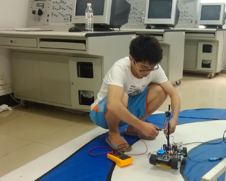 学生可利用该教室参加各类电子设计竞赛,图为学生在测试自己的参赛作品。