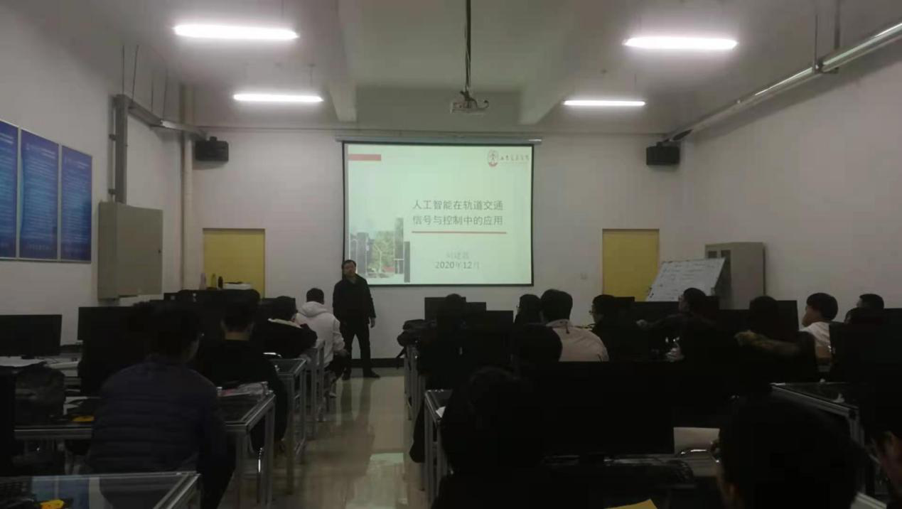 12月24日,太阳集团网tyc9728副院长刘建磊教授为2018级轨道交通信号与控制专业学生开展了“人工智能在轨道交通信号与控制中的应用”专题讲座。讲座主要涵盖了人工智能技术的发展历程和人工智能技术在轨道交通信号与控制领域的应用。