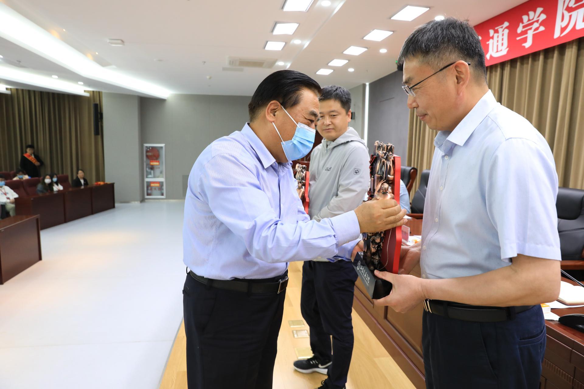 5月4日下午,学校在长清校区明德楼报告厅举行2021年度共青团工作表彰大会,我院荣获学校高水平学术科技和创新创业活动最高荣誉——“登峰杯”,学校党委书记王焕斌为我院颁发奖杯。