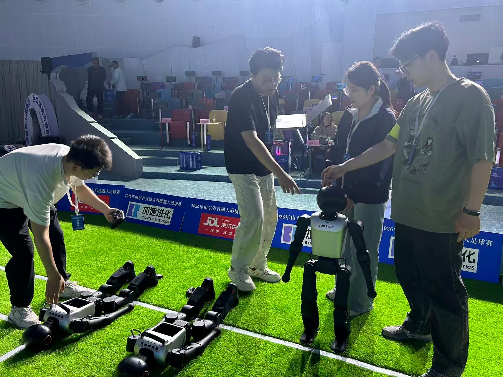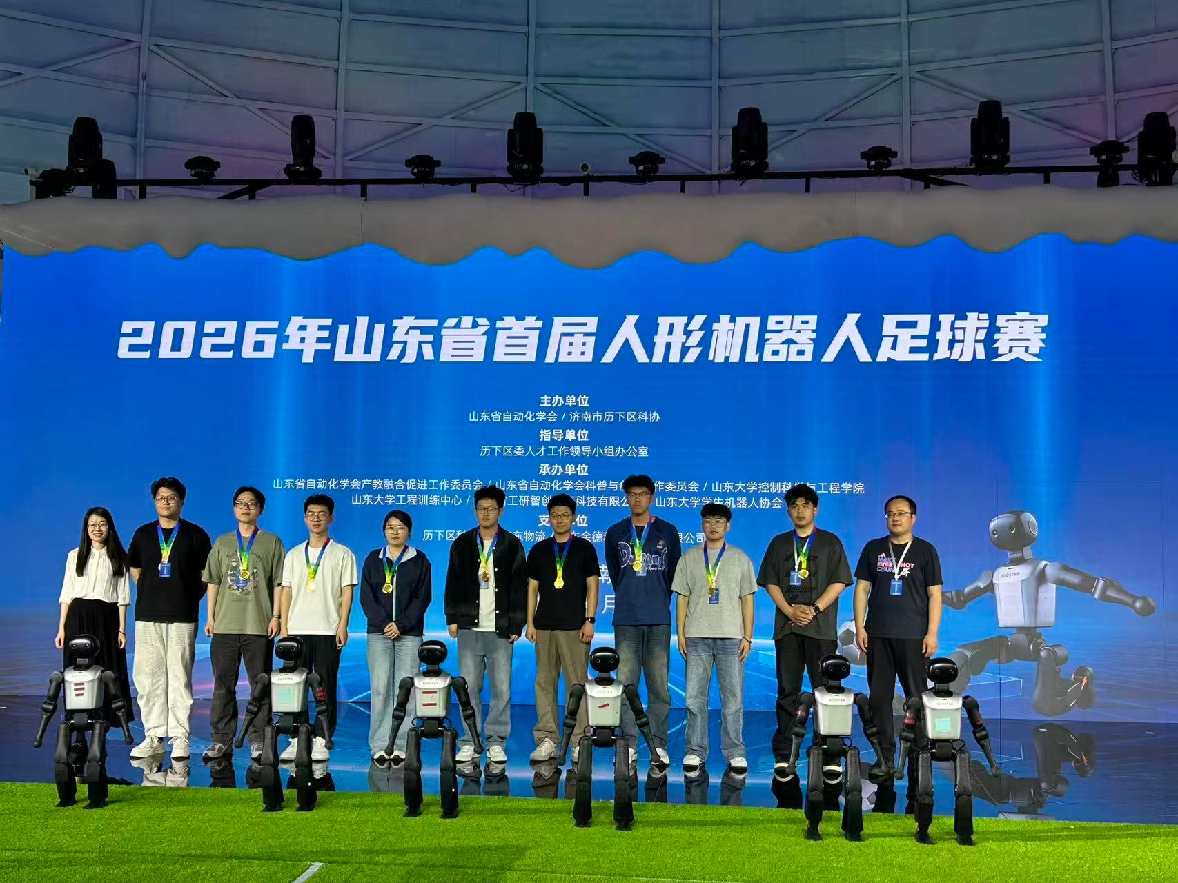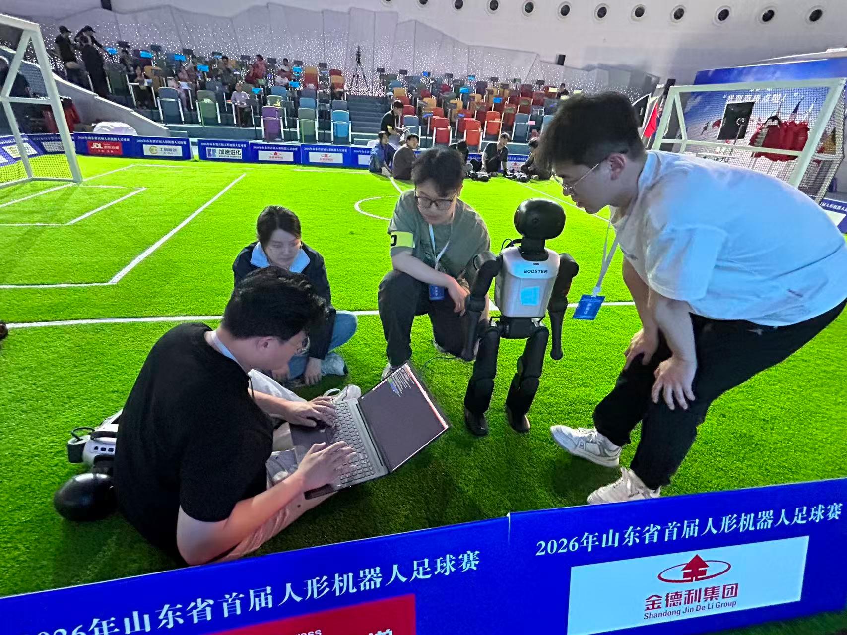 4月26日,由山东省自动化学会与历下区科学技术协会主办的2026山东省首届人形机器人足球赛在山东省博物馆举办。赛事吸引了来自省内高校的8支队伍同场竞技,集中展示了人形机器人在自主感知、运动控制与对抗策略等方面的综合能力。
